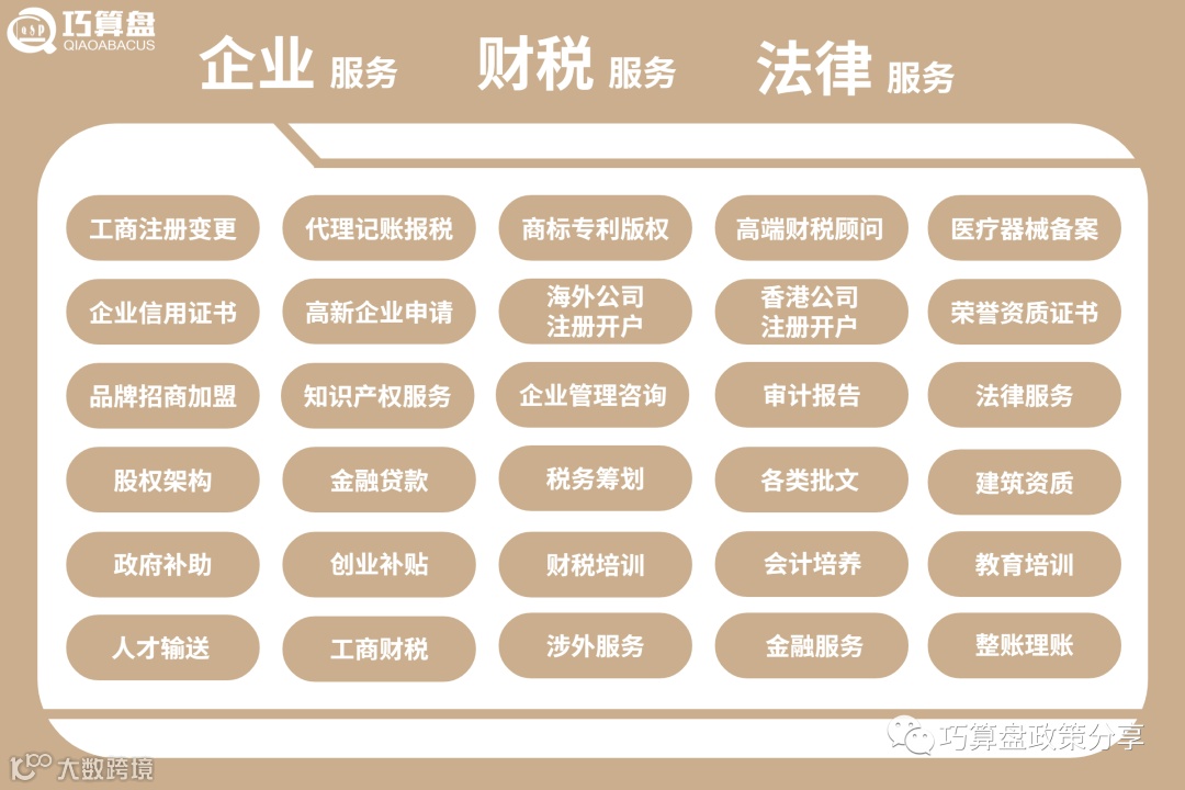 全方位一站式服务,最专业严谨的企服、财税功底支持,为您的成功保驾护航。