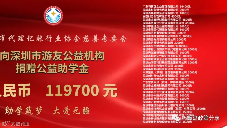 公司始终秉承“服务、监督、管理、协调”的宗旨,积极参与推进行业党建、廉洁自律、人才兴业、专业赋能等工作。赋能涉税服务行业发展,为深圳经济社会发展作出了积极贡献。公司作为深圳市税务局税务师协会核心师资单位,深圳市代理记账行业协会执行会长单位、专家委员会委员长单位: