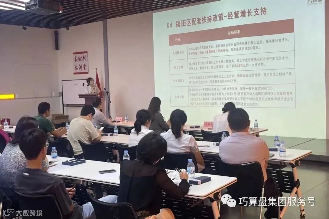 ·2023年9月,巧算盘专家顾问团队前往华富街道,受邀参加金融助力中小微企业专题讲座。会上,巧算盘专家代表就“四上企业”、深圳市各区补贴情况以及相应的配套扶持方案,与众人进行分享交流,把惠企政策讲明、说清,帮助中小微企业成长。