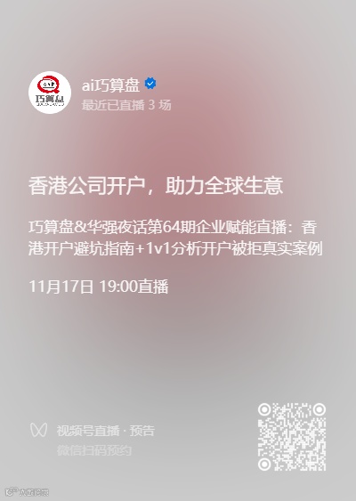 时间:11月17日 19:00视频号【ai巧算盘】