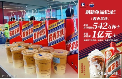 9月4日,瑞幸和茅台联名推出的“酱香拿铁”,主打咖啡里面加茅台,瞬间引爆全网,光4号当天,这杯咖啡就卖出了542w杯,销售额直接破亿!