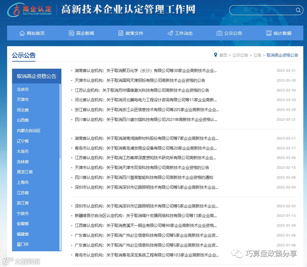 近日,深圳、青岛、湖南等多地发布企业被取消高企资格!