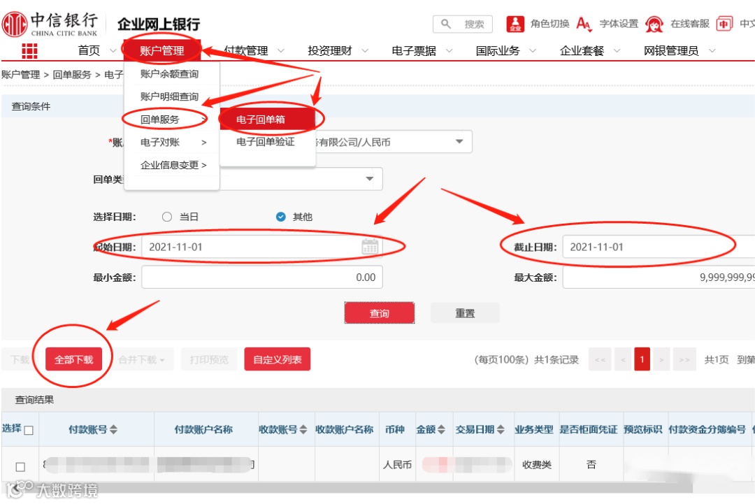 一、银行流水对账单下载:在明细里面查询后下载流水,要EXCEL格式的