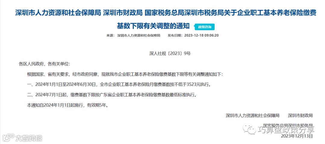 二、2024年7月1日起,缴费基数下限按广东省企业职工基本养老保险缴费基数最低标准执行。