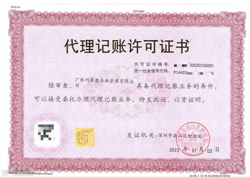第一条 证照齐全,营业执照,代理记账的许可证样样齐全