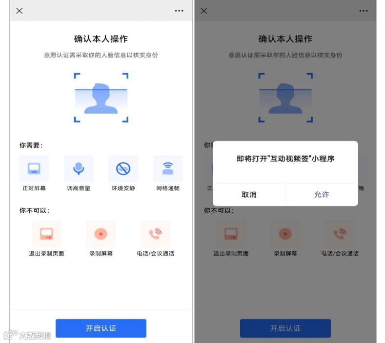 (5)点击“开启认证”,确认跳转至“视频签”小程序。