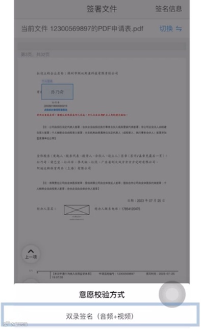 (4)点击“确认签署”,选择弹出的“音视频双录”方式。