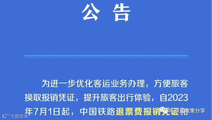 据“中国铁路”公众号发布消息,自2023年7月1日起,中国铁路对退票费用报销凭证进行了更新升级!