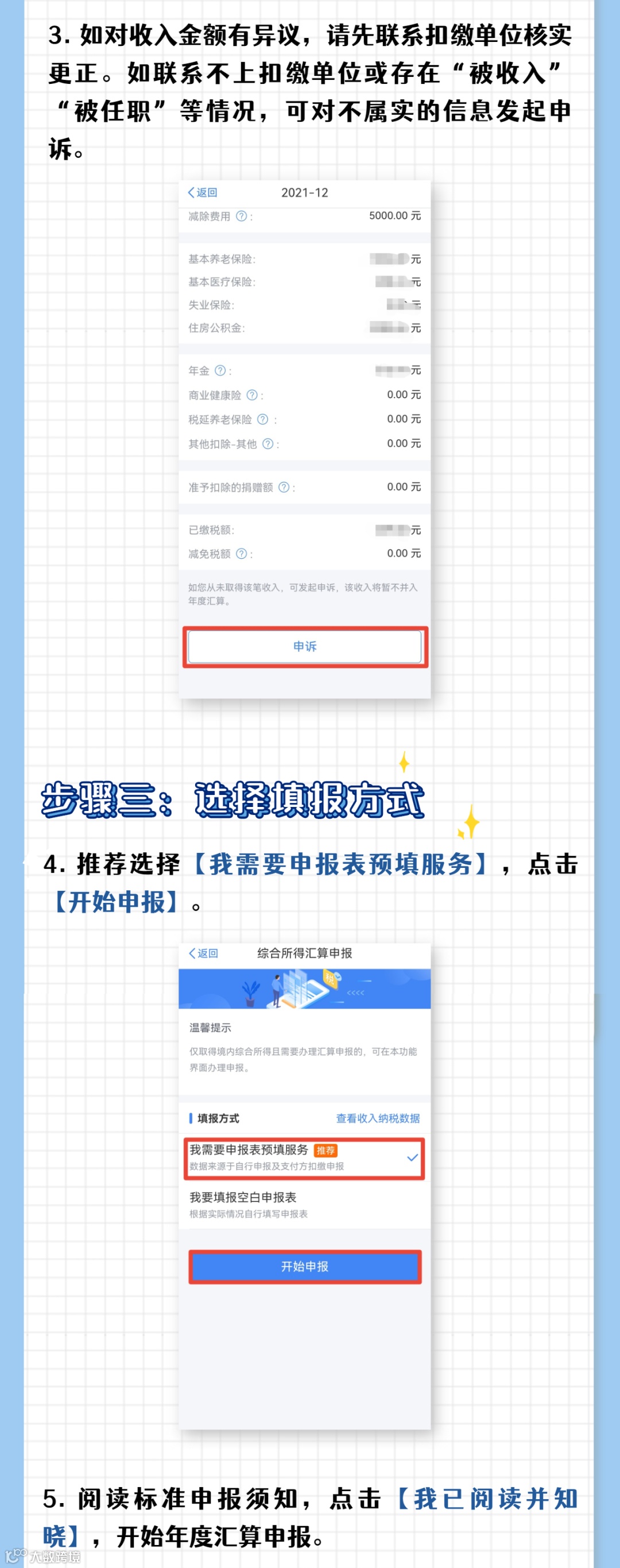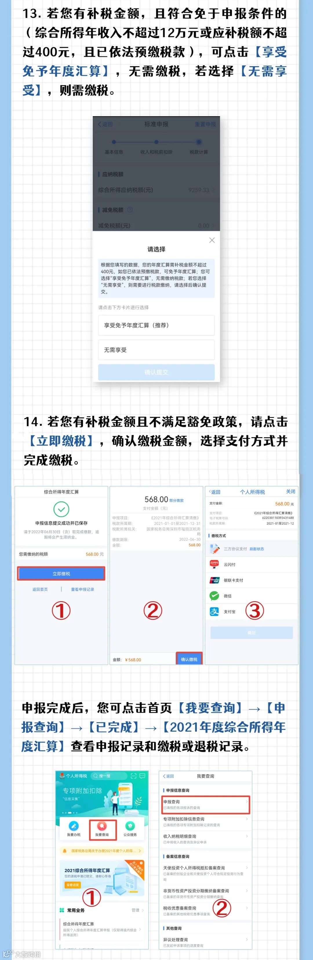 纳税人需汇总2021年度取得的工资薪金、劳务报酬、稿酬、特许权使用费四项综合所得,进行“查遗补漏、汇总收支、按年算账、多退少补”,办理年度汇算。