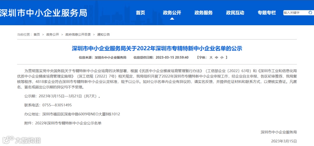 点击文章右下角的“阅读原文”查看2022年深圳市专精特新中小企业公示名单
