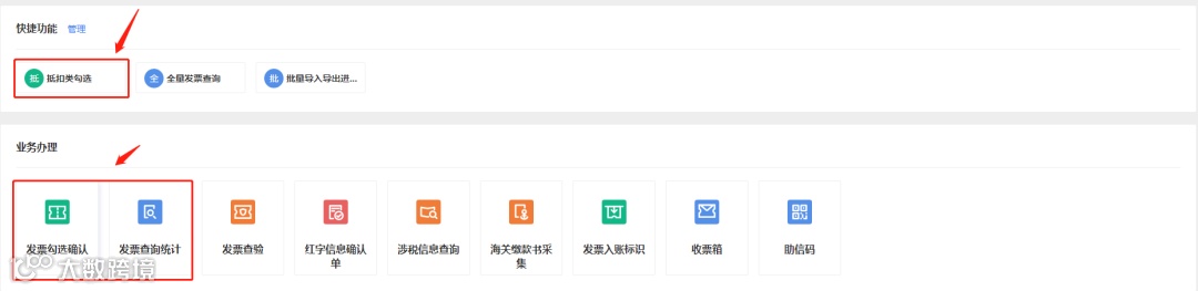 2.点击”我要办税”----“税务数字账户”----点击快捷功能“抵扣类勾选”----发票勾选完之后点击“统计确认”,完成发票认证。