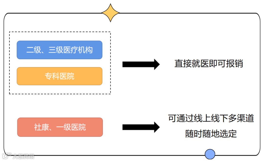 简单来说,二级、三级医院和专科医院就医方式没有变化,参保人直接到医院就诊即可报销;