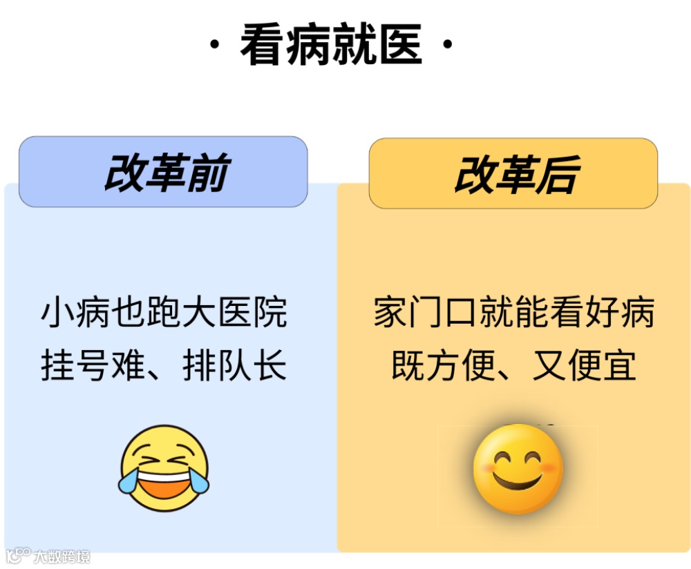 改革后,一般来说,去一级及以下医疗机构,二级和三级医院看病,报销比例可以达到75%、65%、55%,越往基层报销越多,引导大家优先在基层医疗机构看病,也支持社康等发展。以后在家门口就能看好病,还更便宜!