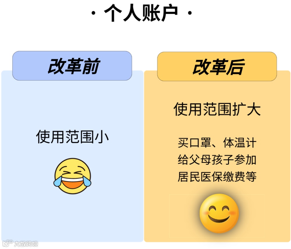 首先,改革后,参保人缴费负担不变,个人账户的历史积累额不变,仍然归个人使用,还可在家庭成员之间共济使用,同时支付范围进一步扩大。