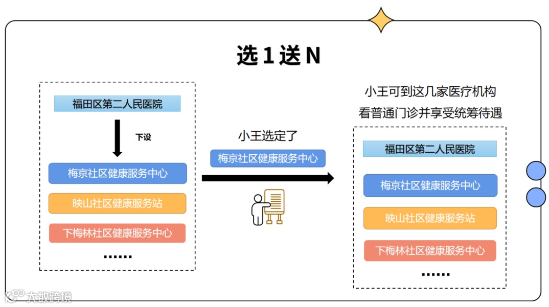 对选定社康的,该社康的结算医院,连同结算医院下设的其他社康,都可以“打包”成一个整体作为参保人选定的统筹定点机构。
