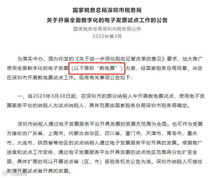 巧 · 行业动态 | 收藏!国家税务总局深圳市税务局关于开展全面数字化的电子发票试点工作的公告