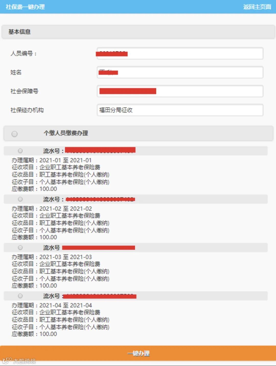 个人社保费一键办理