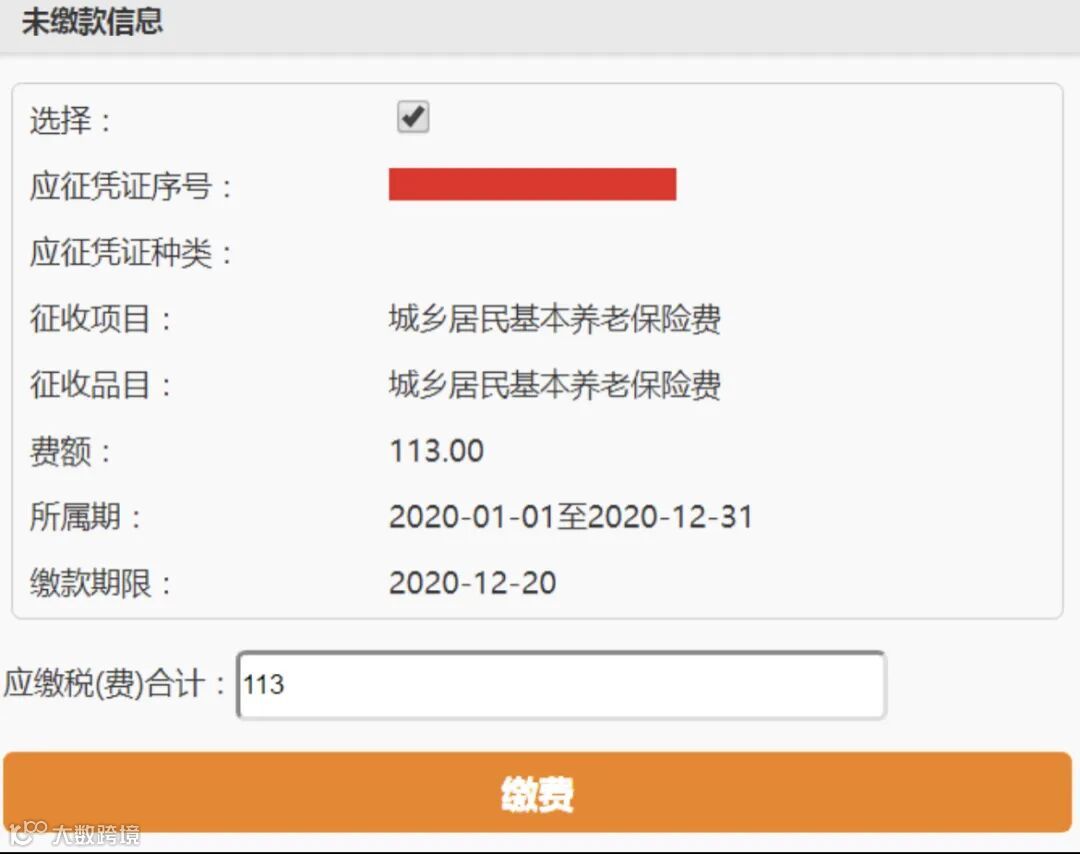 ③若费额无误,可点击提示框里的【前往缴费】进入未缴费信息页面。