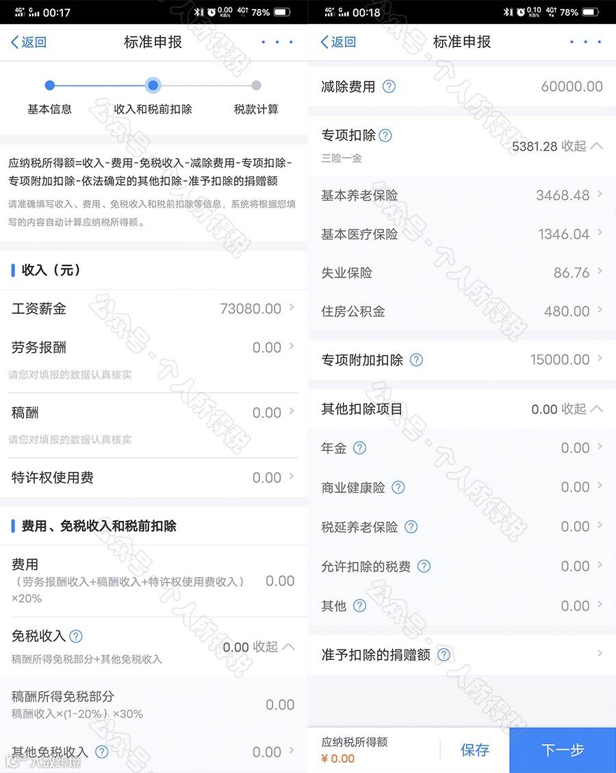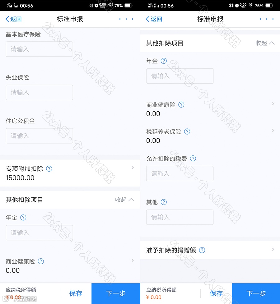 除专项附加扣除信息、商业健康险、税收递延养老保险、准予扣除的捐赠额、减免税额外,可直接填写申报表各项数据。