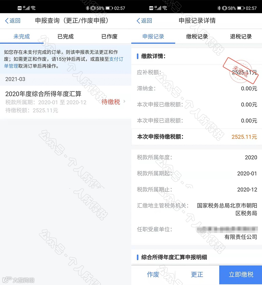 若您存在应补税额但不符合免于申报,可点击【立即缴税】进入缴税。