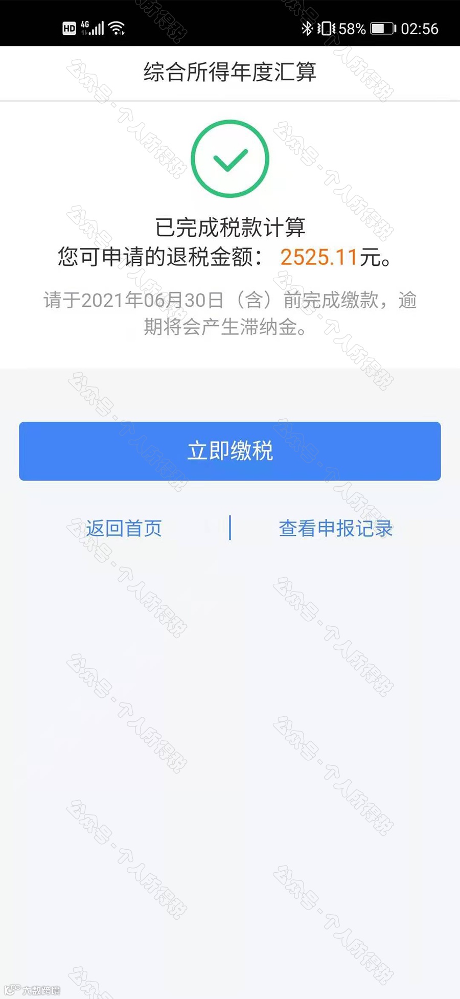 若您收入不足12万元且有应补税额,或者收入超出12万元但应补税额≤400元,申报提交后无需缴款,点击享受免申报。