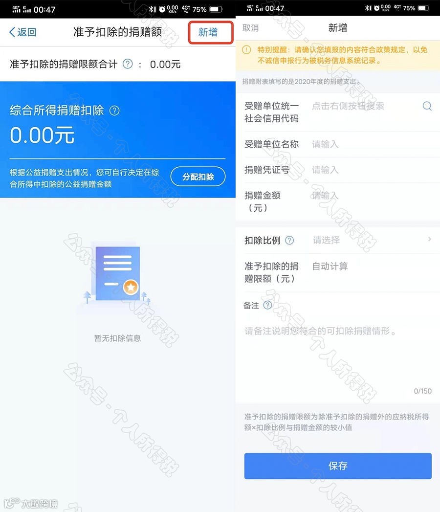 新增捐赠额后,可点击【分配扣除】设置您要在综合所得中扣除的金额。
