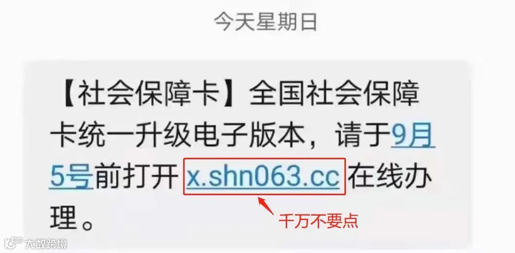 有不法分子冒用社保部门名义,发送短信称全国社会保障卡统一升级电子版,要求市民点击链接提供个人信息。