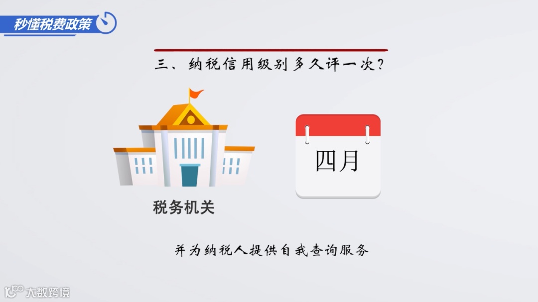 1.税务机关每年4月会确定上一年纳税信用评价结果,并为纳税人提供自我查询服务;