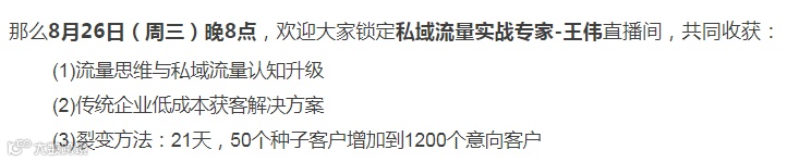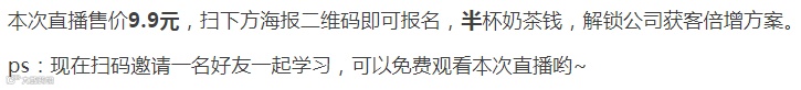 除此之外,通过本次直播报名私域流量训练营-2天1夜线下课程的朋友,有早鸟优惠价可享哦