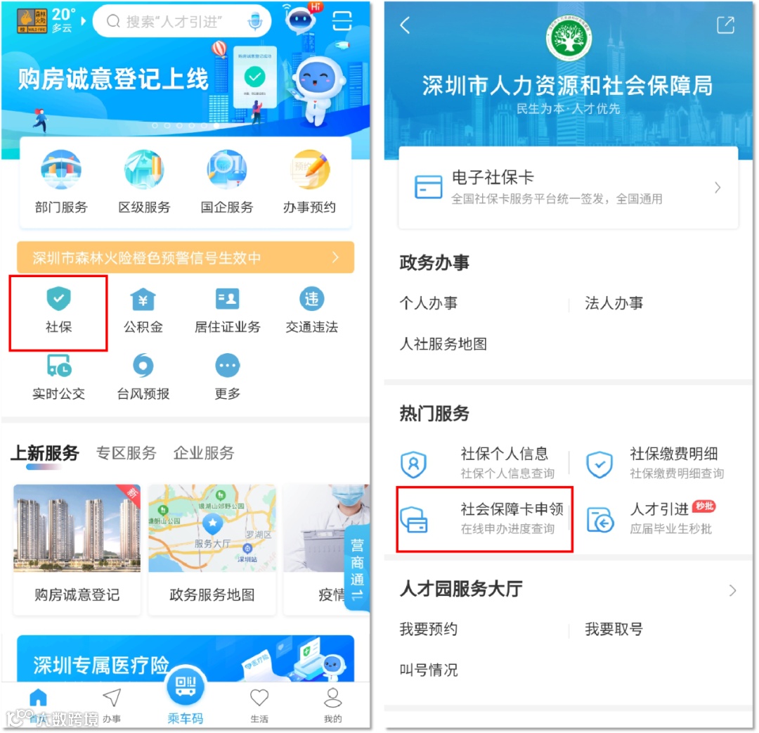 打开“i深圳”就可以申办金融社保卡