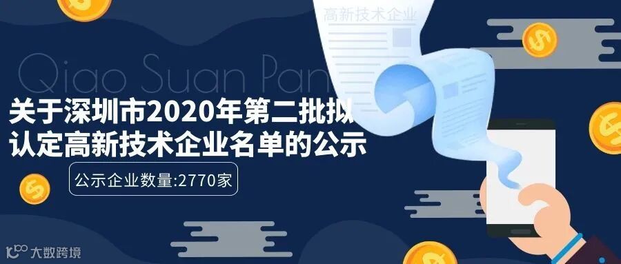 根据《高新技术企业认定管理办法》(国科发火〔2016〕32号)和《高新技术企业认定管理工作指引》(国科发火〔2016〕195号)有关规定,现将深圳市2020年第二批2770家企业拟认定高新技术企业名单予以公示,公示期为10个工作日。