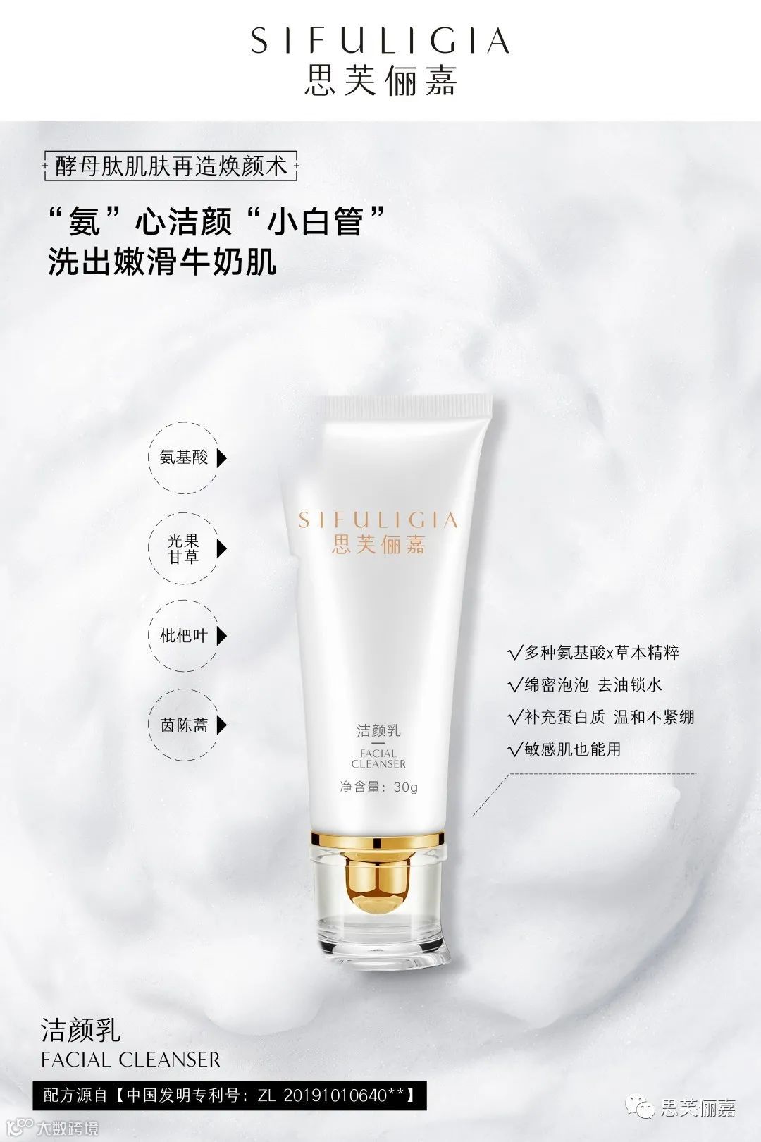 为匹配调肤的特殊要求,思芙俪嘉实验室经过反复锤炼,最终采用【中国发明专利号:ZL 20191010640**】配方,以多种氨基酸+中药成分配比炼制而成。