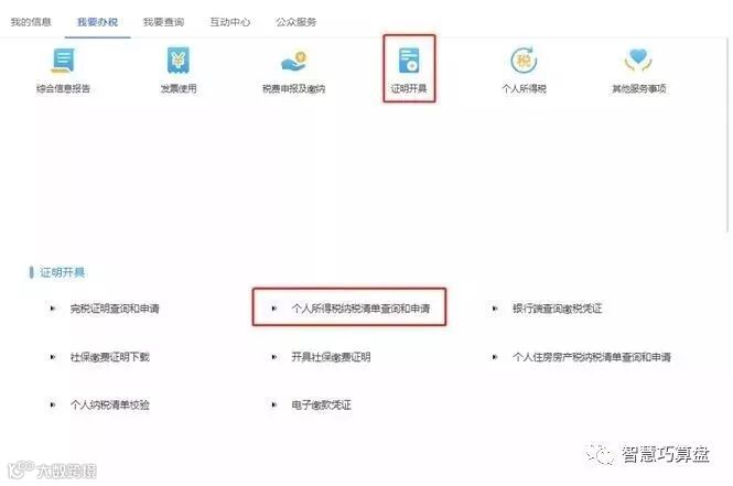 第三步:点击我要办税-证明开具-个人所得税纳税清单查询和申请,进入对应功能。