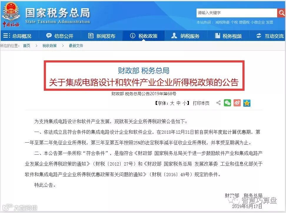 财政部、税务总局发布公告,明确2018年度集成电路设计和软件企业将继续享受此前“两免三减半”的所得税优惠,简直就是重磅减税政策利好!