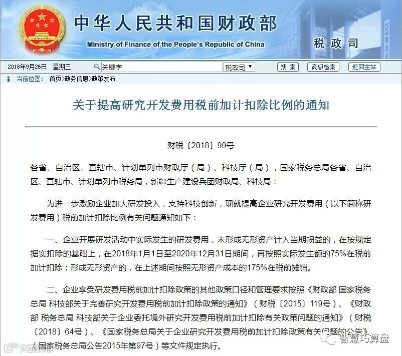 抵扣比例更高,覆盖更广:2018年9月20日财政部、税务总局与科技部联合发文(财税〔2018〕99号),阶段性的将研发费用加计扣除比例提升至7%。