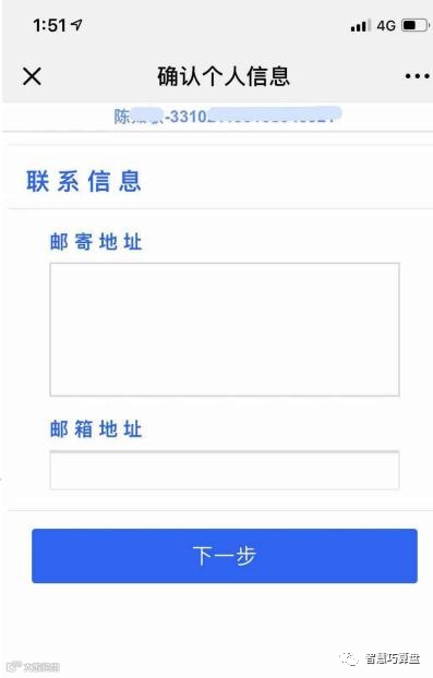 步骤七:输入邮寄地址及邮箱地址,确认无误后点击下一步