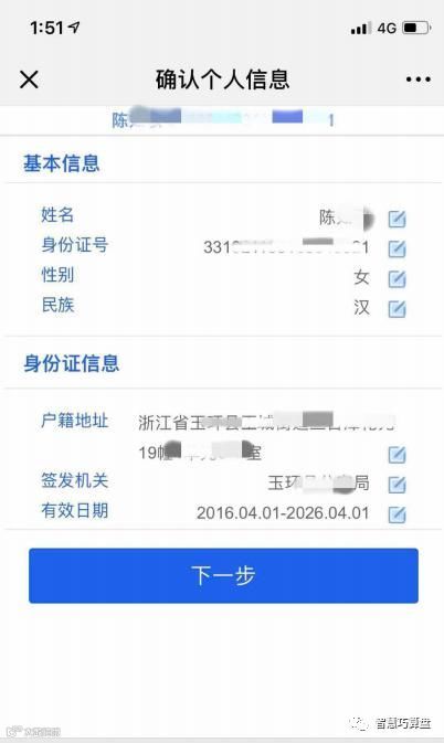 步骤五:确认个人信息(请仔细检查上个步骤识别出的身份证信息,如有误的可进行修改)