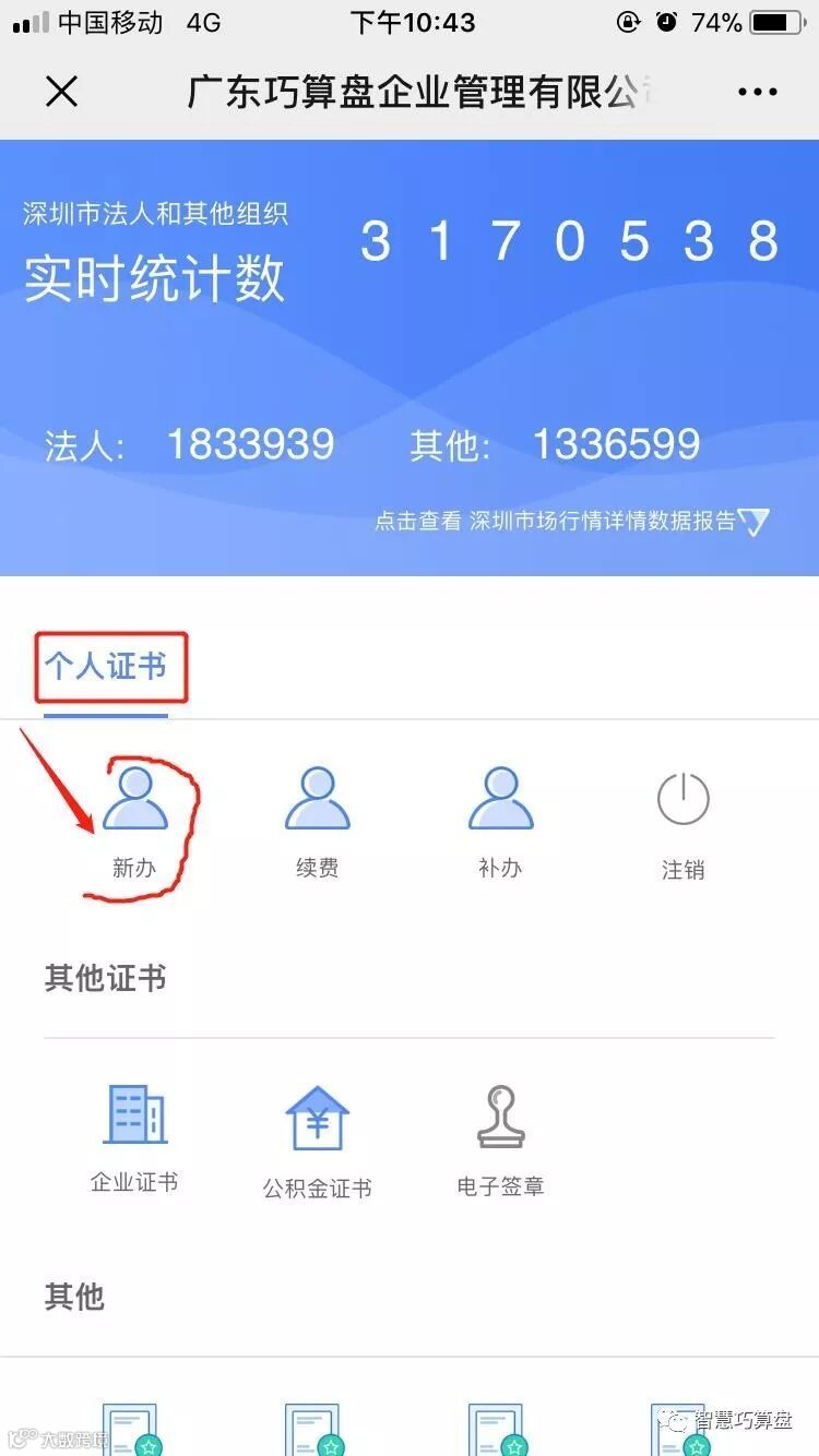 步骤二:进入后点击个人证书--新办
