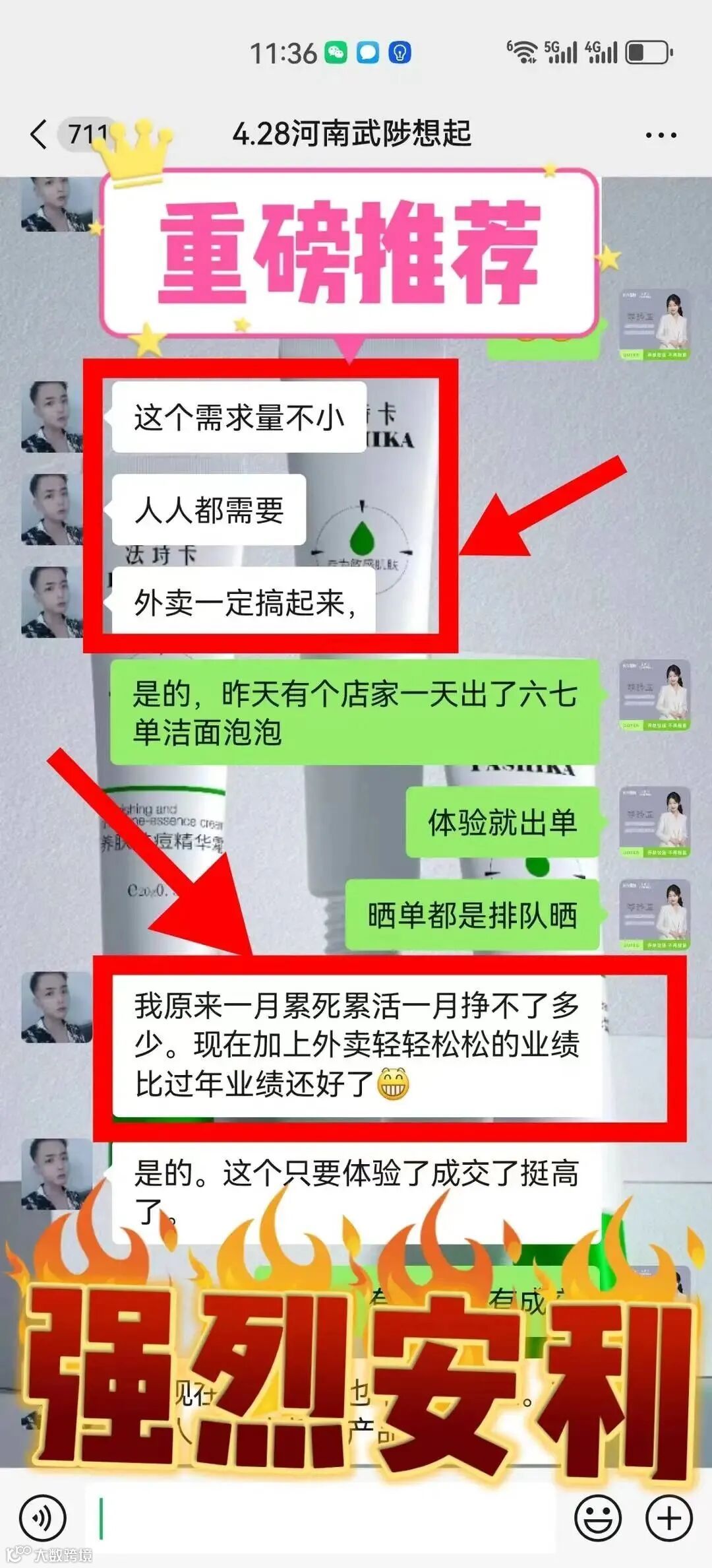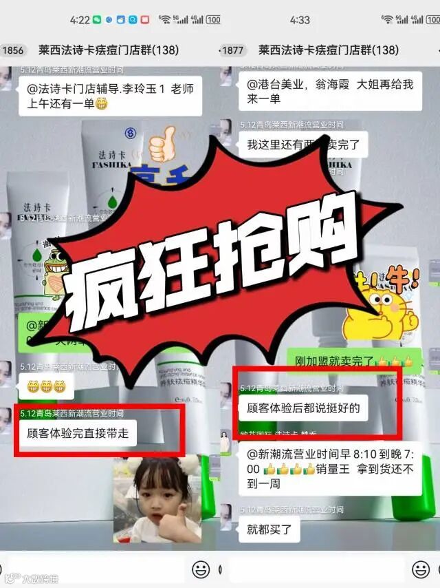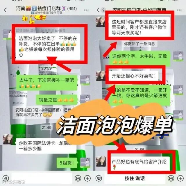 给大家算一笔账,洁面泡泡你们拿货十套送三套,到手价一套56.6块钱,零售价149 卖一套利润接近100块,一天卖四套,一个月下来就赚12000,并且只让你们做体验成交,单个客户成交时间也就不到十分钟,但是却有很可观的利润,有很多店家都非常感谢当地的经销商给他们带去了这么好的产品和项目