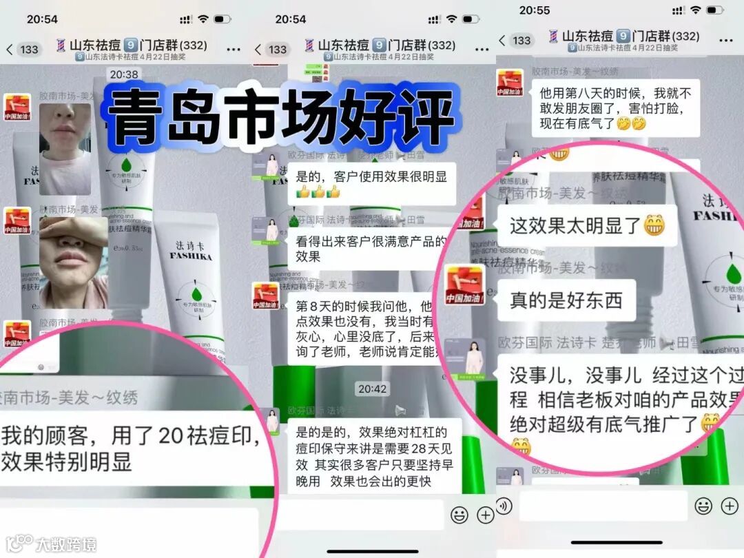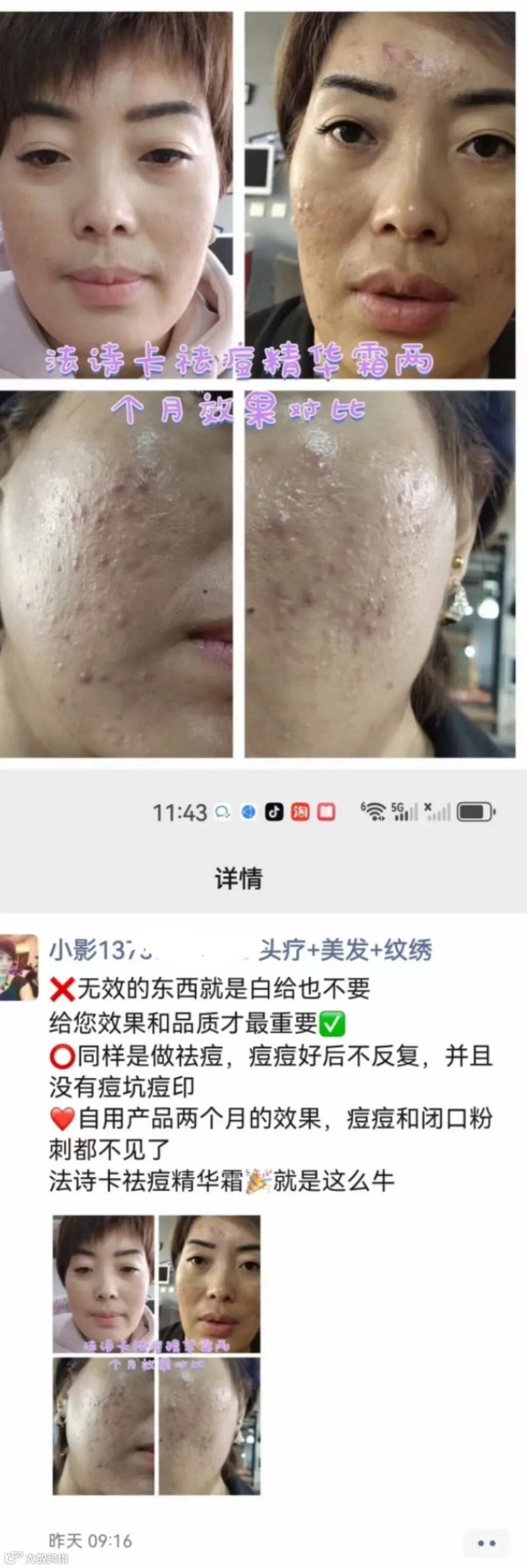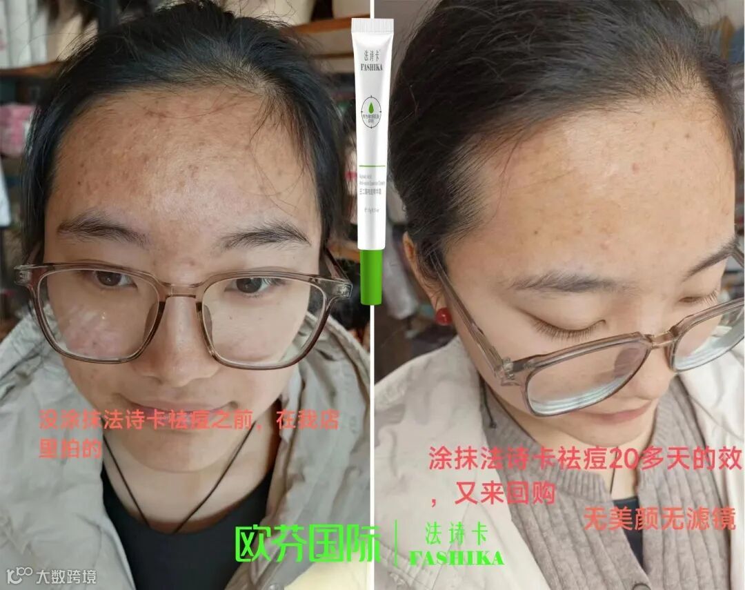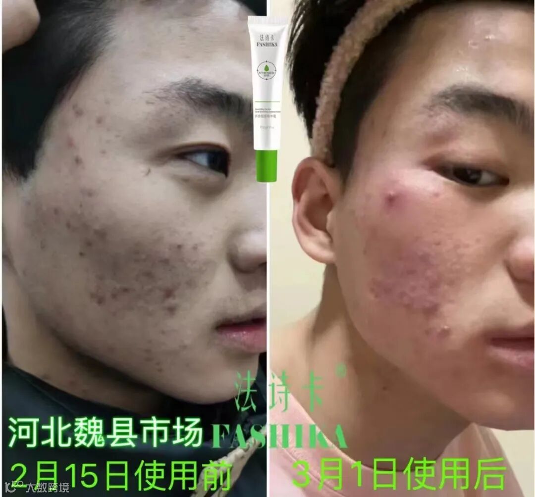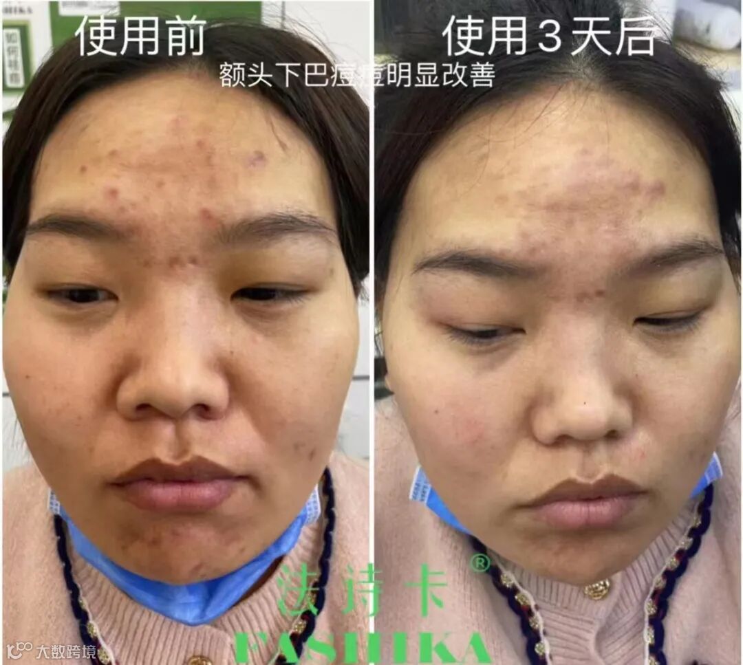 ✅客户使用法诗卡祛痘霜十天,痘痘和痘印面积都在缩小 效果非常明显