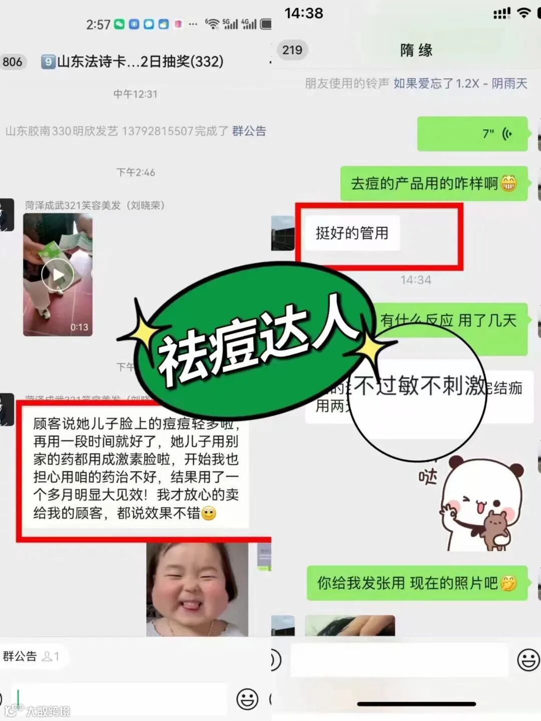 ✅来自河南长垣客户使用法诗卡祛痘霜20多天,痘痘问题效果明显,承诺无效退款,就是这么有底气