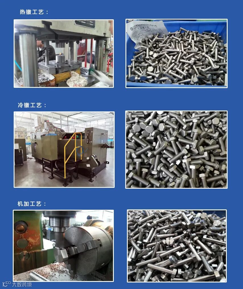冷镦工艺:通过冷镦机施压成型,利用金属材料塑性,达到金属固态变形。主要用于大批量生产螺栓、螺母、螺钉等,生产效率极高。