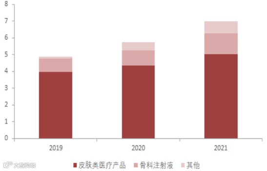 图表:华熙生物医疗终端分业务营收(亿元)