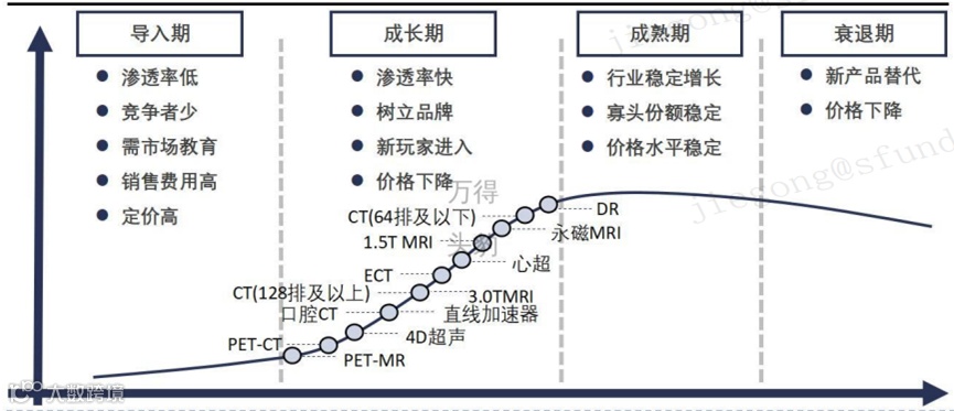 影像诊断细分市场需重点关注的是各类产品所处的生命周期阶段及国产化率。