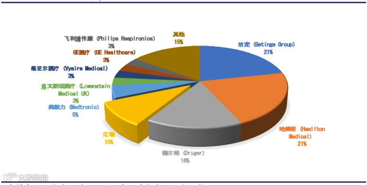 从长远投资价值考虑,呼吸机领域值得重点关注的是有创呼吸机细分市场。在全球呼吸机市场中,有创呼吸机市场以国外品牌为主,包括瑞典的洁定集团(Getinge)、瑞士的哈美顿医疗公司(Hamilton Medical)、德尔格、美敦力、GE医疗、飞利浦伟康等品牌占据了全球中高端呼吸机市场。