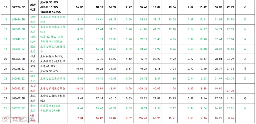 在我国A股上市公司中,通过申万行业分类,选取“生物医药-医疗器械-医疗设备”板块,涵盖上市公司26家,具体如下: