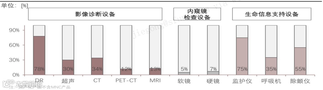 中国医用医疗设备覆盖品类较多,考虑篇幅限制,本报告主要覆盖重要的三个领域:影像诊断、内窥镜和生命信息支持。其中,影像诊断是医用医疗设备中最大的细分。