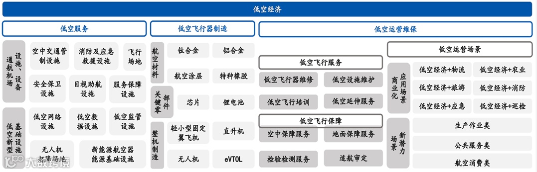 低空经济成为2024年《政府工作报告》提及的重点产业,主要系其产业链条长、辐射面广、成长性和带动性强,有望开启万亿级市场。那么,低空经济具体包括哪些领域,投资机会何在?本篇梳理了低空经济的三大主要领域,从而探索投资机会。