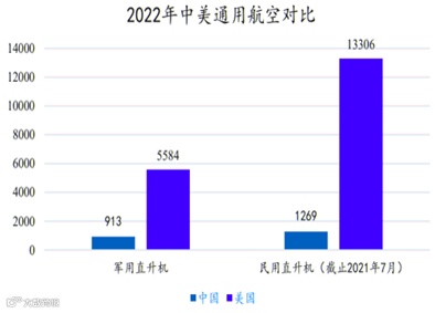 通用飞机层面,根据《GAMA Annual Report 2019》数据,2019年全球约有44.6万架通用飞机,美国占比约47.48%,中国占比约0.61%;根据《World Air Forces 2023》数据,2022年我国军用直升机913架,民用直升机1269架,仅分别为美国数量1/6和 1/10。