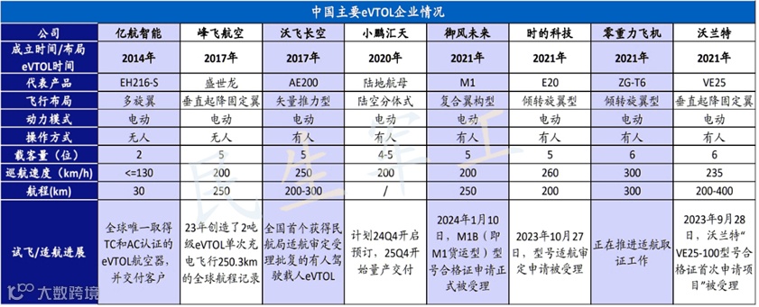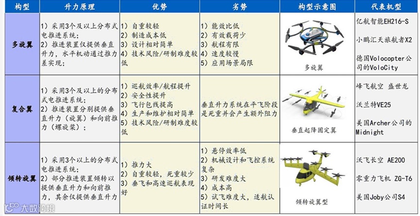 资料来源:邓景辉《电动垂直起降飞行器的技术现状与发展》